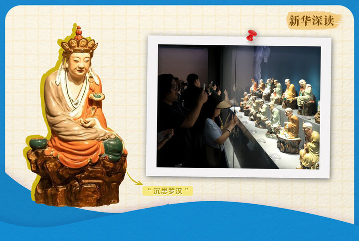 “到博物馆,坐扶梯到3楼,别犹豫,改步行奔6楼,撒腿跑向左边第二个展厅,就能甩掉‘千军万马’到‘沉思罗汉’面前……”在景德镇顶流瓷雕“沉思罗汉”搬家前,每逢节假日,展厅内就人满为患,排着一圈又一圈长队的年轻人只为跟它合个影。