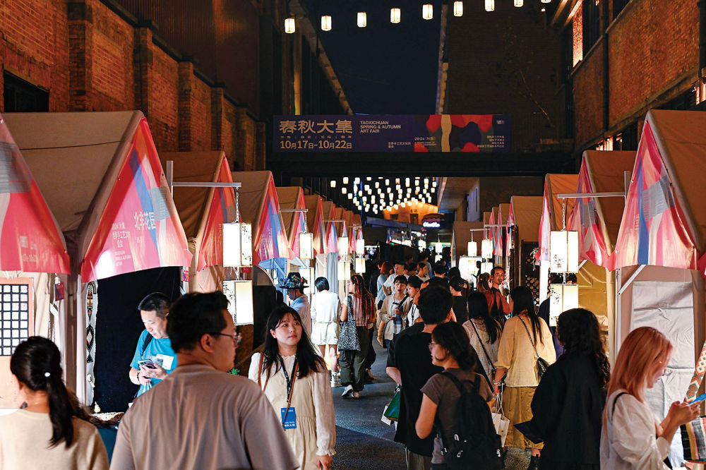 2024年10月17日,游客在陶溪川春秋大集上游览。新华社记者周密摄